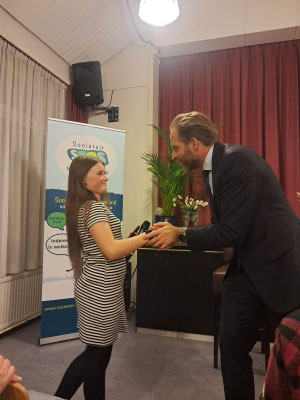 De jury, bestaande uit Corry van Dongen en Robert Leemhuis, hebben de presentatie beoordeeld en vervolgens werden de prijzen bekend gemaakt